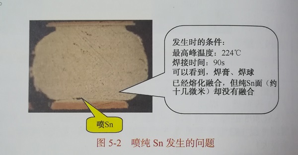 这里使用打引号的“有铅工艺”,是因为有铅焊料焊无铅元器件实际已经不是传统意义上的有铅工艺了。没有提PCB的有铅无铅问题,但并不是说没有问题,如图5-2所示的案例,就反映了存在的问题——有铅焊膏焊接无铅PCB(喷锡板)和BGA。