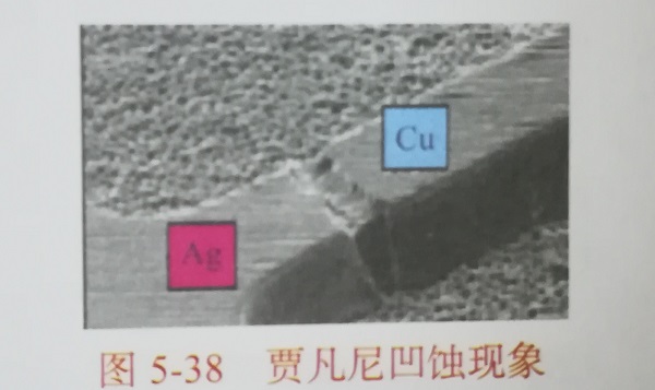 (1)阻焊剂边缘铜线的贾凡尼凹蚀严重后果(=1/3线宽),不能重工,如图5-38所示。